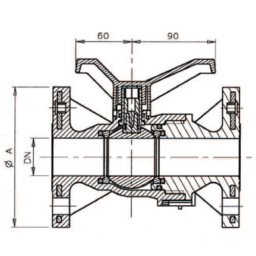 - Flansch-Kugelhahn, 2-teilig, Baulänge nach DIN 558-1, Grundreihe 1