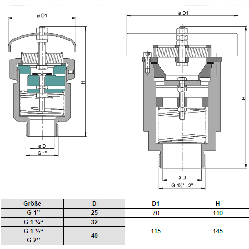 Belüftungsventile als Unterdruckventil zur Verhinderung von unzulässig hohen Behälterunterdrücken, mit Rückschlag, federbelastet - Einbaulage senkrecht - Ventile mit Aussengewinde, für maximale Flexibilität beim Einbau - kleinste Baumaße der Armatur - Deflagrationssichere Unterdruckendarmatur für Atmungsöffnungen an Behältern und Rohrleitungen mit Schutzhaube d 70 mm für Größe G 1 aus Edelstahl 1.4301, Schutzhaube ab Größe G 1 1/2: d 110 mm aus Edelstahl 1.4571 - Werkstoff Rückschlagfeder: Edelstahl 1.4571 - Werkstoff Dichtung für Größe G 1: FEP - Werkstoff Dichtung ab Größe G 1 1/2: PTFE - Gehäuse und Ventilteller: Edelstahl 1.4571 - Öffnungs-Einstelldruck: 5 - 210 mbar - Volumenströme bei Dichte von Luft mit 1,29 kg/m3 und 0°C und 1,013 mbar siehe Leistungsdiagramme - Einsetzbar für alle brennbaren Flüssigkeiten bis zur Explosionsgruppe IIB3 mit einer Normspaltweite (NSW) mit >/= 0,65 mm für eine max. Betriebstemperatur von 60°C - Geeignet auch für ortsbewegliche Tanks zur Beförderung brennbarer Flüssigkeiten. |