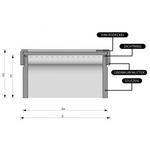 Revisionsstutzen - Handlochdeckel, Stutzen aus PE, Überwurfmutter aus PP, Einlegedeckel aus PE