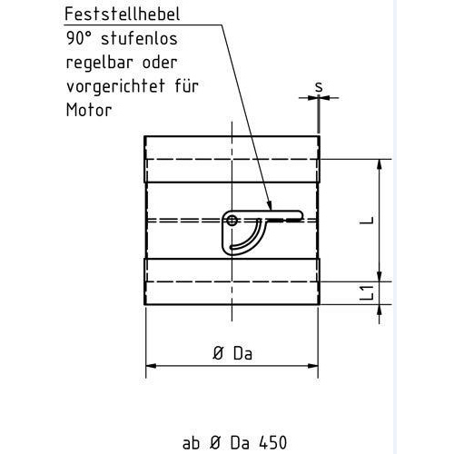 | - Kunststoff-Formteil rund mit Innenliegendem Anschlag zur Verbindung von Rohren in einer Abluftanlage mittels Schweißverfahren. Als Drosselklappe zum Einstellen von Volumenströmen Muffeninnendurchmesser in Anlehnung an die DIN 8077, - Herstellungsverfahren: bis Ø 400 mm aus Spritzteilen gefertigt, ab Ø 450 mm aus Halbzeugen gefertigt - Negativer Überdruck auf Anfrage nach mechanischer, chemischer und thermischer Belastung - Farbe RAL7037 - Farbe Handhebel RAL3020 |