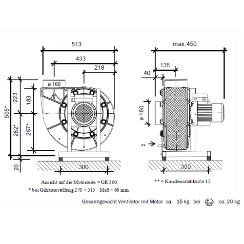 Radialventilator FRv 160/ 2/ L / D/ EX