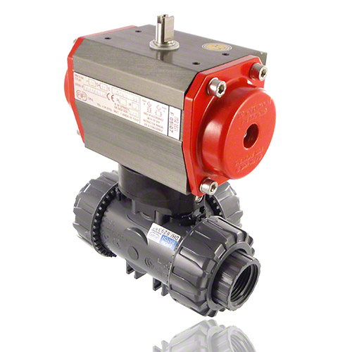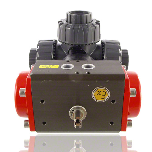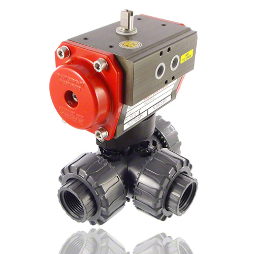 3/2-Wege-Kugelhahn aus PVC-U mit pneumatischem Stellantrieb