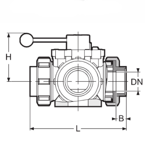 3-Wege-Kugelhahn PPGF DN 50, Flanschanschluss, L-Bohrung, EPDM