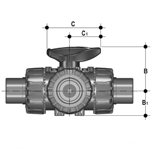 | Bohrung: L-Bohrung Anschluss: Schweißstutzen zum Muffenschweißen radial ein- und ausbaubar mit gesicherter Überwurfmutter Dichtung: PTFE/FPM |