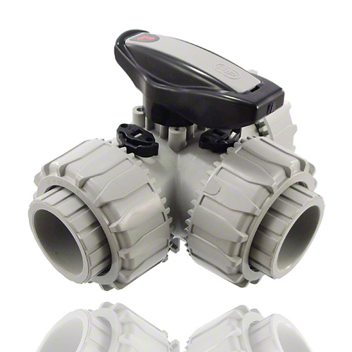 PVC-C 3-Wege-Kugelhahn, FPM, T-Bohrung, Klebemuffe