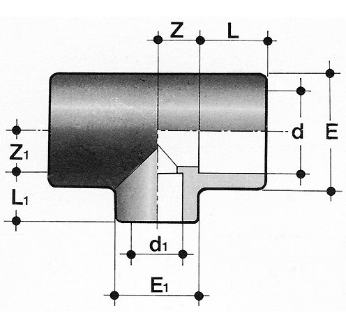 PVC U T-Stück 90°, reduziert, Klebemuffe