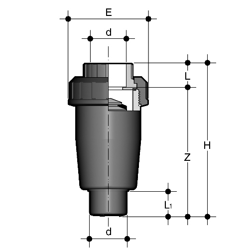 | -Anschluss: Klebemuffe/Klebestutzen (Standard) -Anschluss: Gewindeeinlegeteil und Kelbemuffe mit IG-Gewinde liegt lose bei -Dichtung: EPDM -Be- und Entlüftungsventile sind zum Entlüften und Belüften (Vermeidung einer Vakuumbildung) von Behältern und Rohrleitungen geeignet -Be- und Entlüftungsventile dürfen nur in senkrechte Leitungen eingebaut werden -Die Überwurfmutter muss immer nach oben zeigen -Zur Verminderung der Verletzungsgefahr, sollte die Armatur an eine Leckageleitung angeschlossen werden -Als Beruhigungstrecke wir d=5xd empfohlen -Nicht für abrasiv wirkende Medien einsetzen -Stempel aus PVC-U (leer) |