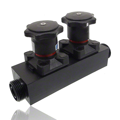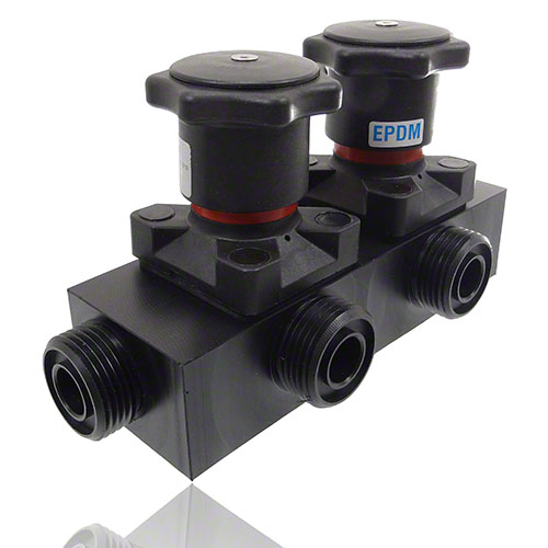 Mehrwegeventil aus PE mit zwei Handantrieben, Membrane EPDM