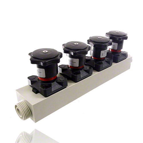 Mehrwegeventil aus PP mit vier Handantrieben, Membrane FPM
