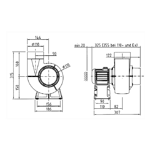 saug- und druckseitige Schutzgitter sind bauseitige Leistung durch Kunden