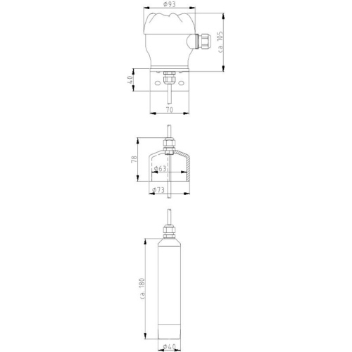 | Leckagesonde mit Ø40mm Fühlerteil, PE, Anschlusskopf und Rohrkappe Ø63mm mit Stellverschraubung |