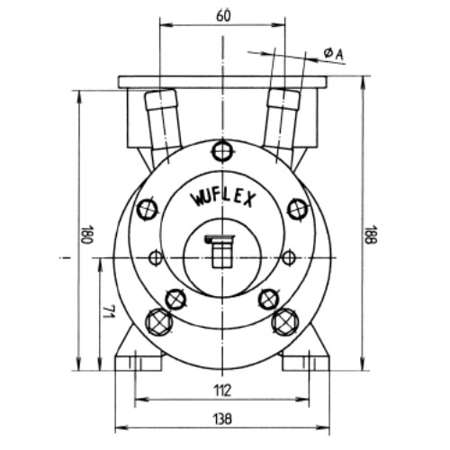 Die Darstellung zeigt den einfachen Aufbau der WUFLEX-Pumpe, bestehend aus: Deckplatte, Expansionsring, Pumpenbalg, Gehäuse, Flansch und Motor. mDie WUFLEX-Pumpe NF70 besteht aus zwei Pumpen NF35, montiert an einem Motor (0,55 kW). Saug- und Druckstutzen sind jeweils zu einem Anschluss zusammengefasst. Die Exzenter der Pumpen arbeiten um 180º zueinander versetzt. Dadurch bildet.